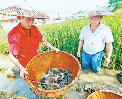 金秋时节,“桂北粮仓”广西全州县迎来稻香鱼肥丰收季,当地村民在稻田里开田捉鱼。今年,该县以产业助推脱贫攻坚,利用稻田养殖禾花鱼30多万亩,亩产禾花鱼25至30公斤,农户亩均增收1300元以上。