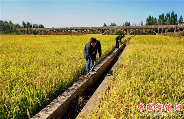 卢龙县卢龙镇武家沟村的村民在清理田间斗渠的淤泥(10月7日摄)。