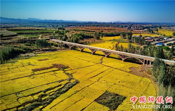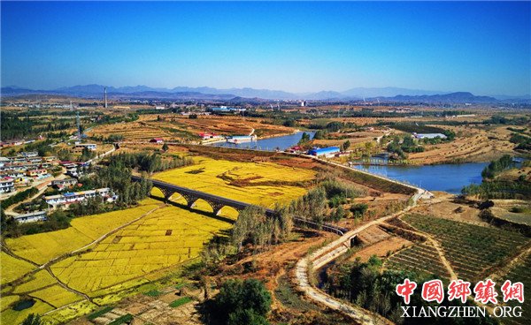 卢龙县卢龙镇武家沟村附近的主干渠渡槽和水库(10月7日无人机拍摄)。