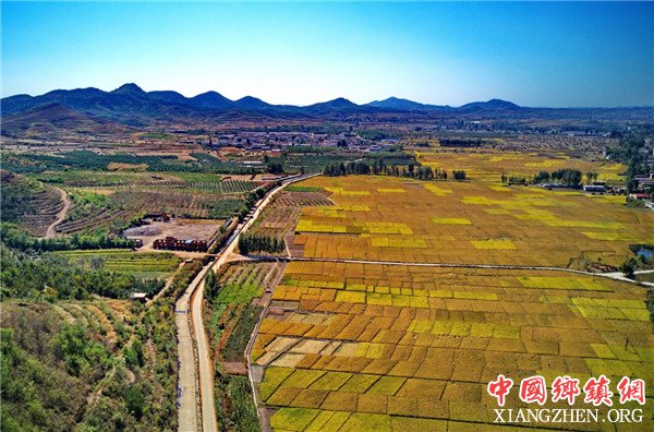卢龙县潘庄镇桃林营村附近的主干渠和稻田(10月7日无人机拍摄)。