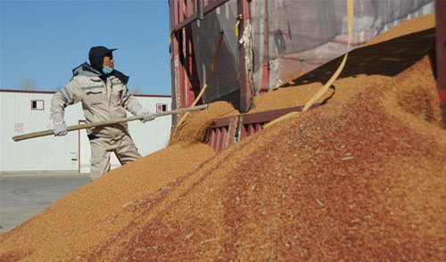 当日,农发行通辽市分行向通辽市粮辉农贸有限公司投放高粱收购贷款1000万元,标志着农发行全国首笔杂粮收购贷款投放。 新华社记者李云平 摄