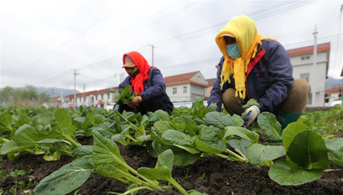 11月7日,江苏省连云港市朝阳街道刘巷村农民在田里栽种过冬蔬菜。 当日是立冬节气,各地农民抢抓农时做好采收、播种、御寒等工作,田间地头一派繁忙。 新华社发(王健民 摄)