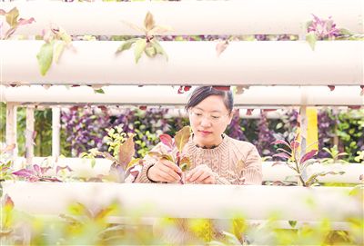 海安市雅周现代农业园农民对无土栽培的观音菜进行培管。 向中林摄