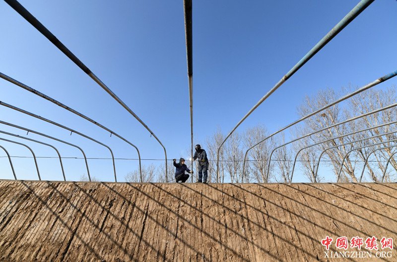 12月9日,乐亭县胡家坨镇一个果蔬专业合作社的社员在育苗棚内查看蔬菜秧苗长势。 12月9日,工人在乐亭县汀流河镇现代农业园区内修建蔬菜暖棚。