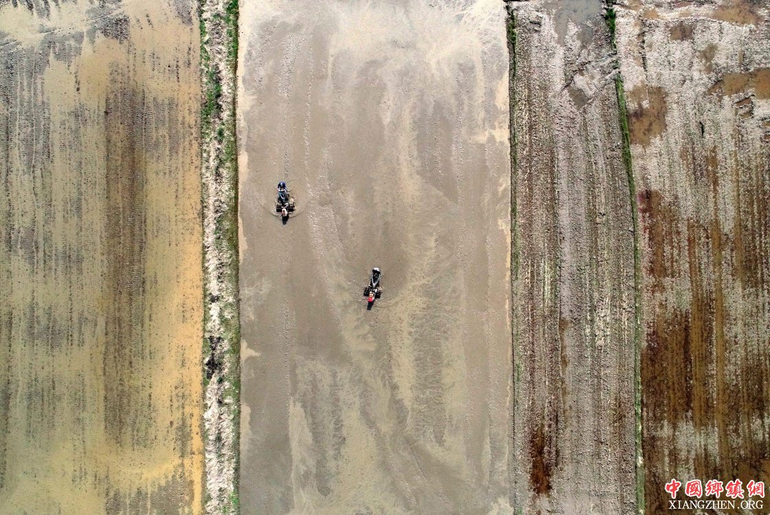 3月12日,在江西省南昌县泾口乡,当地农户在翻田平地(无人机拍摄)。