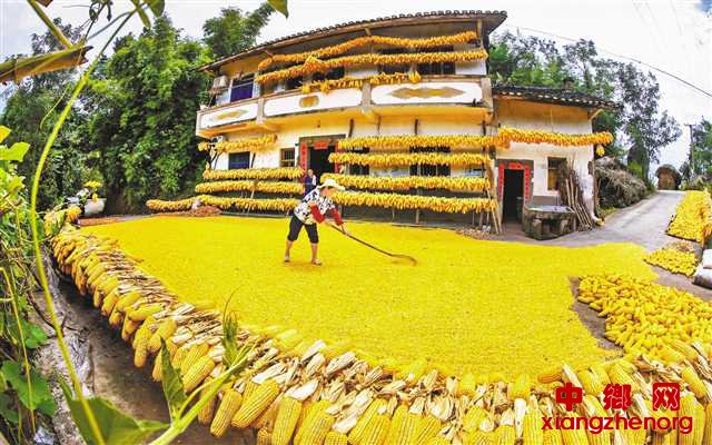 近日,垫江县五洞镇云龙村五组村民李淑英正在晒玉米。今年,她家种植的5亩玉米较往年增收近两成,丰收的玉米将院坝装点成金色的家园。通讯员 向晓秋 摄