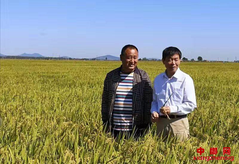 李家洋院士(右)和当地的种粮大户(左)。