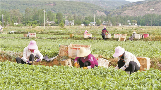 “每天,我们种5亩香菜,采收5亩香菜。50天生长一茬香菜,轮换操作250亩菜地,保证天天有香菜供应。从田间采收到广东客商手里只要4天时间。”5月12日,洱源县牛街乡龙门村委会中共和村民小组组长顾忠炬,讲起香菜种植满脸笑容。