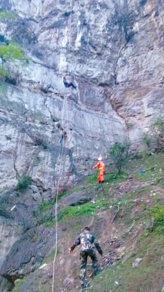 叙永消防中队接警后,赶赴现场。消防队员对现场地形地势进行预判之后,决定悬空救人。“他距离悬崖上部比较近,但悬崖上全是乱石。”叙永消防中队副中队长石力介绍,消防人员从上部救人担心碎石滚落砸伤小伙。鉴于小伙具备速降的技能,消防人员从悬崖顶部先放置一根安全绳,保证小伙安全。再放一根固定扎实的主绳,小伙通过主绳慢慢滑下。在消防队员和“院 长”的密切配合下,被困3个多小时后,小伙成功着地。