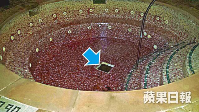 酒店抽乾按摩池水调查,池中可见正方形的回水口(箭嘴示)。张鼎和摄