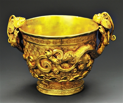 出土于贵州遵义新蒲播州杨氏土司墓地的“螭首金杯”。