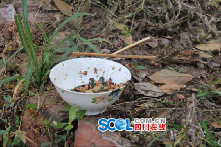 随后,四川在线记者来到五通桥区冠英镇鸭口山村2组,见到了这位村民张希林。据了解,张希林今年48岁,是鸭口山村2组的队长,一直在家务农,在他的指引下,记者看到犯罪嫌疑人米陕杰被捕的地方还放着当时吃饭剩下的碗筷,碗里还有少许饭菜。