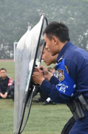 盾棍术是运用警棍盾牌进行攻防的一种格斗技术,在抵近接敌对抗中,能充分运用进可攻、退可守的灵活战术。