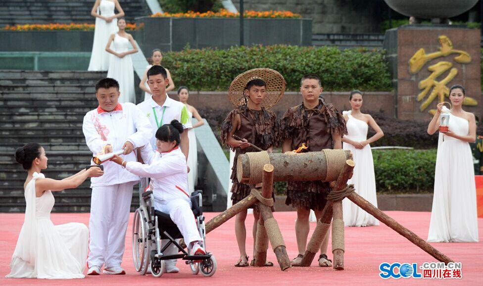 四川在线消息(四川日报记者 钱晞 刘川 王诗侠 摄影 李向雨)6月6日,全国第九届残疾人运动会暨第六届特殊奥林匹克运动会圣火采集暨火炬传递点火起跑仪 式在广安市思源广场隆重举行。
