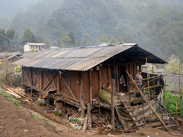“家徒四壁”常用来形容贫穷。可在贵州省荔波县瑶山乡巴平村兰金华的家里,连一面严格意义上的“墙壁”都没有。