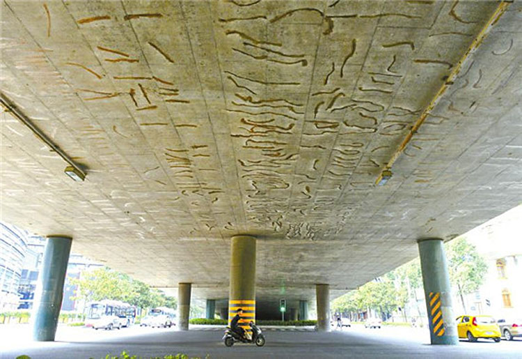 7月11日,天府立交桥底出现胶水补丁。