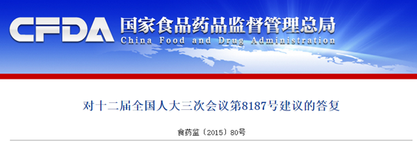 发布日期:2015-07-19 10:40|国家食品药品监管总局官网|admin
