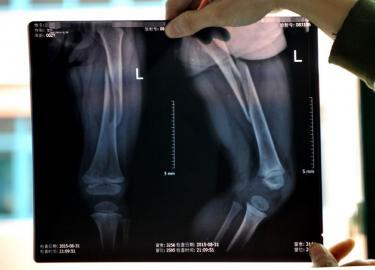9月4日,成都新都龙桥镇一家医院里,两岁半的女童佳佳(化名)躺在病床上,她的左腿被硬邦邦的几块木板固定着。尽管医生给她打了缓解疼痛的药物,她还是疼痛得不停冒汗。