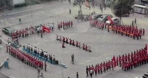 2013年,在重庆最繁华的解放碑广场,某公司员工跪着绕解放碑爬行,一边爬一边高喊加油!