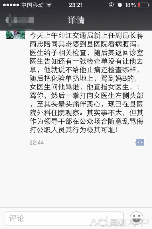印江县人民医院的工作人员告诉南都记者,交通局副局长打伤安医生确有其事。今天早上,他在医院内部交流群里得知,蒋局长已经前来道歉。