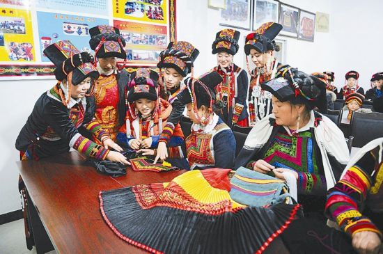 在实施精准扶贫工作中,峨边充分利用彝区妇女从小就喜欢刺绣的特长,在彝族集居的乡镇大力开展彝族刺绣培训班,发展刺绣产业。有6000余名彝族妇女参与手工刺绣行业,部分彝族妇女年收入达到3万至10万元。本报记者 肖雨杨 摄