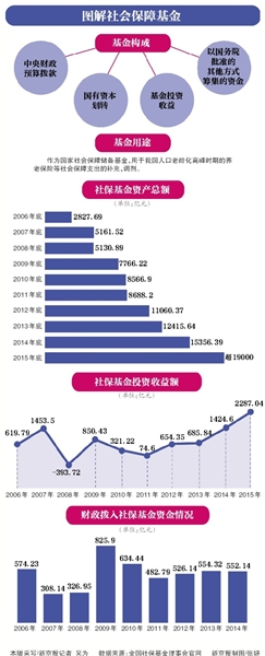 2000年8月,全国社会保障基金设立,16年来,通过财政拨款等方式不断充实,加上投资收益,截至去年底,基金规模已达15085.92亿元。