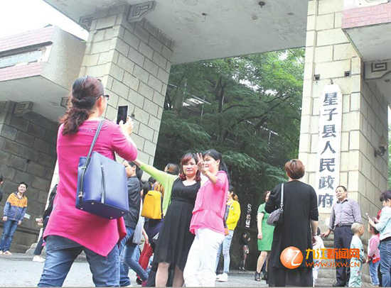 在庐山市挂牌成立之前,星子市民纷纷前往位于紫阳路的县政府和县委门前合影留念。
