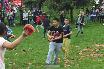 根据现场参与者拍摄的一段视频显示,西瓜大战开始后,不少男生女生站在草坪上开始追逐,人们手持西瓜互相投掷,西瓜扔出后掉落在地,红色的瓜瓤散落在绿色的草地上,十分明显。