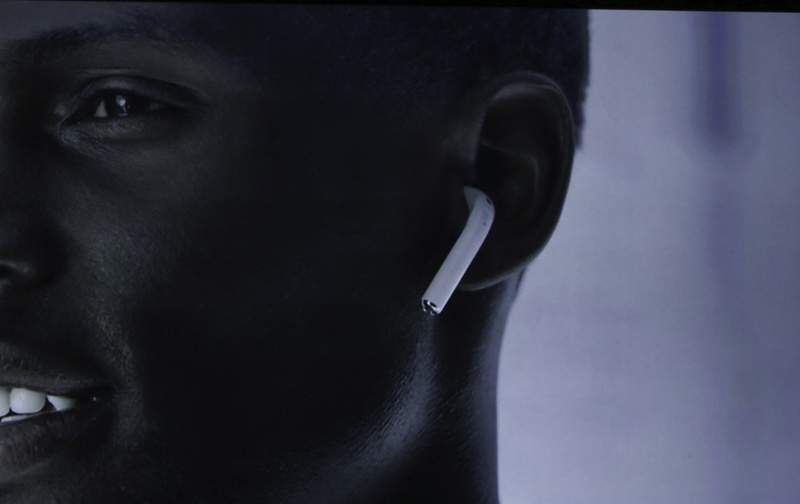 另外,苹果还带来了一款无线耳机AirPods,售价1288元,采用W1芯片,内置麦克风,它的大小如同普通没有线的苹果耳机。支持5小时续航,双击耳机开启Siri,充电盒支持24小时续航,只需要打开就可以让iPhone自动识别,对Apple Watch等产品也都支持。