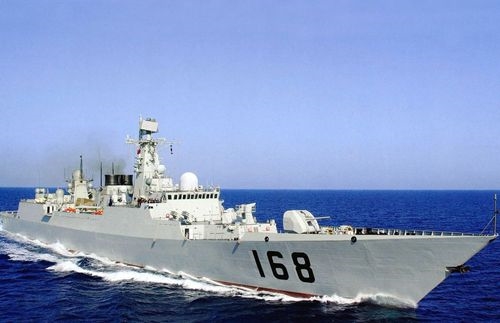 三亚舰,2013年12月入列,是我国自行研制设计生产的新型封闭式多用途导弹护卫舰,配备主炮、垂直发射防空导弹、反舰导弹、速射炮等武器。可单独或协同海军其他兵力攻击敌水面舰艇、潜艇,具有较强的远程警戒和防空作战能力,是我国海军新一代主力作战舰艇。