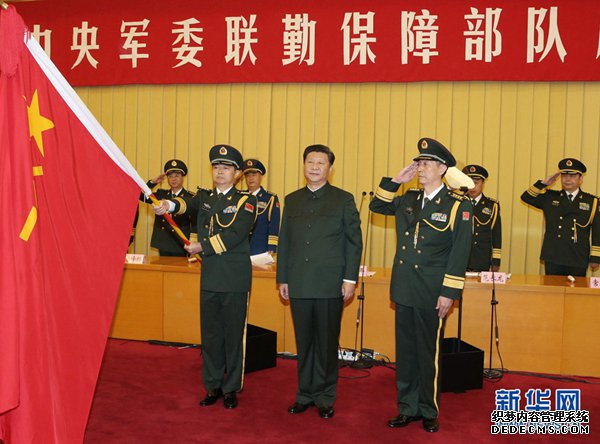新华社北京9月13日电(记者李宣良、胥金章)中央军委联勤保障部队成立大会13日在北京八一大楼隆重举行。中共中央总书记、国家主席、中央军委主席习近平向武汉联勤保障基地和无锡、桂林、西宁、沈阳、郑州联勤保障中心授予军旗并致训词,代表党中央和中央军委向联勤保障部队全体指战员致以热烈的祝贺。他强调,要牢记使命、勇挑重担,以党在新形势下的强军目标为引领,深入贯彻新形势下军事战略方针,推进政治建军、改革强军、依法治军,按照联合作战、联合训练、联合保障的要求加快部队建设,努力建设一支强大的现代化联勤保障部队。