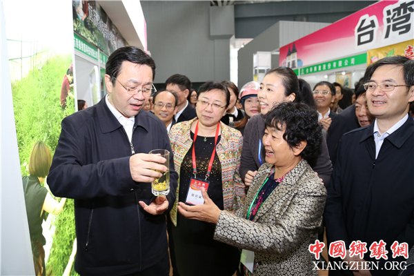 省委常委、副省长杨岳(左一)与女经纪人亲切交谈