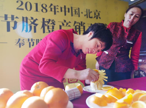 本网讯(记者刘家琴)2018年1月8日,由重庆市奉节县人民政府和《中国扶贫》杂志社联合举办的“‘南国嘉果’——奉节脐橙来袭京城”活动在重庆市驻京办举行。重庆市奉节县人民政府副县长张迁率领县扶贫办主任向城钢、县脐橙产业发展中心主任肖功勋等现场推广奉节脐橙。北京重庆企业商会会长谭传荣等出席了会议。奉节脐橙企业、贫困户代表等与北京相关企业签订了销售合同。