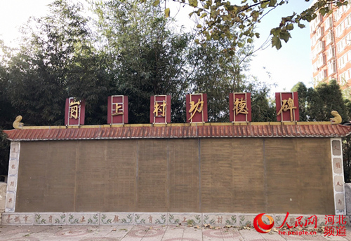 图为岗上村功德碑,建于2008年,记录了见义勇为、拾金不昧等好人好事。李晓 摄