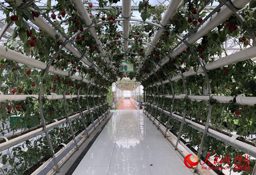 图为塔元庄农业生态园中廊架式无土栽培技术的应用。李晓 摄