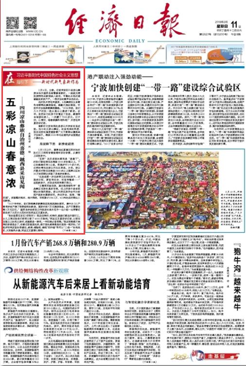 2月11日,《经济日报》刊发《五彩凉山春意浓——四川凉山彝族自治州喜德、越西县采访见闻》一文,聚焦四川凉山州扶贫攻坚成效。文章从三个方面进行了具体阐述。