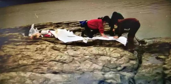 3月的重庆虽已入春,但气温仍然只有10℃左右。在这样的环境下,文保队员们依然跳入冰冷的江水中“开工”,靴子进水了干脆打赤脚,渴了饿了也只能硬挺着。拓片工作需要非常仔细,有时候眼看就要成功,却突然经过一艘轮船,浪花又把片破坏掉,只得重新来。