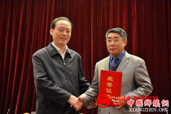 余欣荣副部长为北京市农林科学院玉米研究中心主任赵久然颁发证书。本网记者 叶晓宁 摄