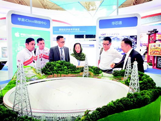 图为马来西亚外宾参观贵州主题馆,在听取500米口径球面射电望远镜(FAST)工程介绍后,被深深震撼。