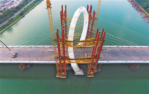 5月29日,由中铁上海局承建的广西柳州白沙大桥主桥主体完工。 (新华社发)