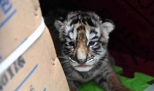 6月5日,一只虎宝宝在哈尔滨东北虎林园育婴室等待吃奶。眼下正值东北虎繁育高峰期,多只“虎宝宝”的降生,让黑龙江东北虎林园热闹起来。一些小虎跟妈妈生活在一起,而另一些被接到“幼儿园”,它们或因妈妈的奶水太少,或因“新手妈妈”缺乏带养经验而需要人工照料。这样一来,饲养员们便承担起“虎爸虎妈”的角色,忙得不可开交。新华社记者 曹霁阳摄