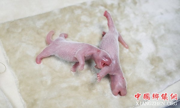 7月2日在成都大熊猫繁育研究基地拍摄的刚出生的龙凤胎大熊猫宝宝。