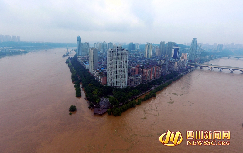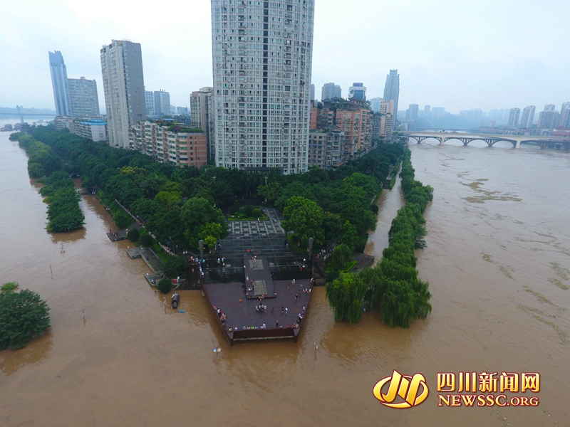 靠江边的滨江路被淹 馆驿嘴像船头载着泸州