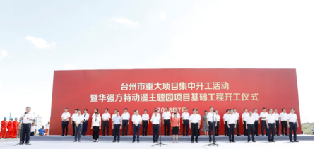 7月9日,台州市举行了重大项目集中开工活动暨华强方特动漫主题园项目基础工程开工仪式,台州市委书记陈奕君,台州市委副书记、代市长张晓强,台州市委常委、常务副市长董贵波,台州湾产业集聚区管委会主任黄继满,华强方特集团总裁刘道强等出席开工仪式。
