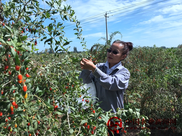 图为宁夏中宁县农民正在采摘枸杞 高雅摄。