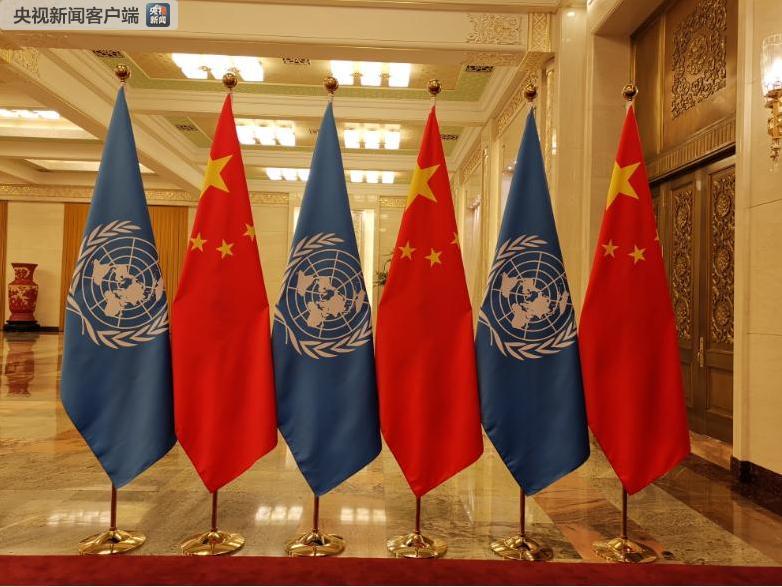 △习近平和联合国秘书长古特雷斯握手处。(央视记者杨立峰拍摄)