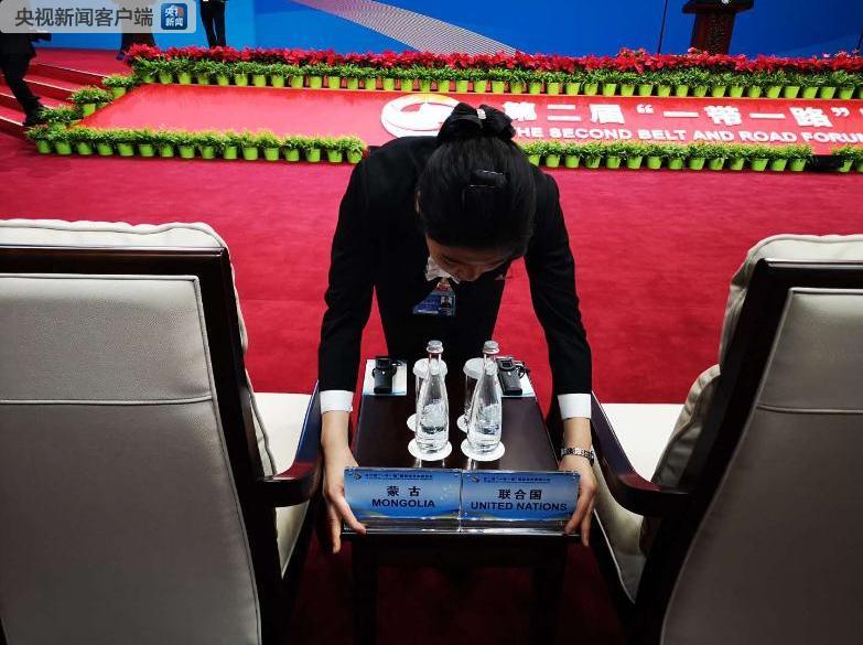 △工作人员正在布置出席开幕式领导人的座位。(央视记者史伟拍摄)