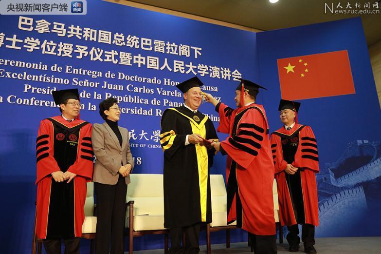 △这是2017年中国人民大学授予巴拿马总统巴雷拉名誉博士学位。(资料图片)