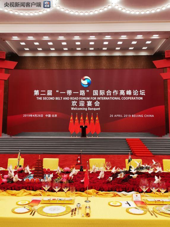 △这是欢迎宴会的主桌,有73个座位。(央视记者李铮拍摄)