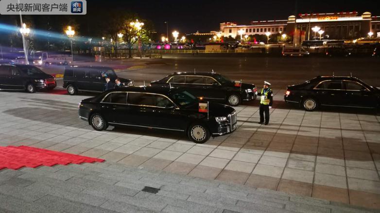 △前来参加欢迎宴会的外方领导人车队陆续抵达人民大会堂东门外。(央视记者韩锐拍摄)